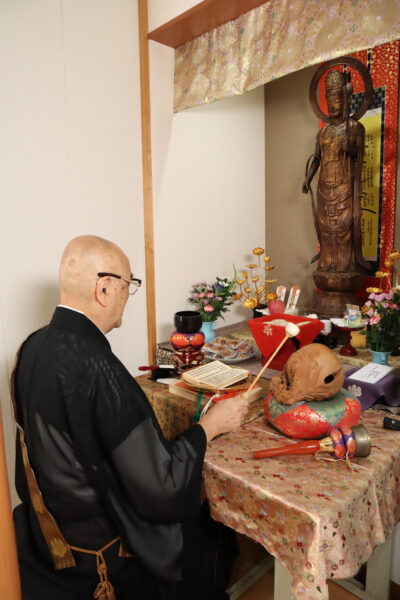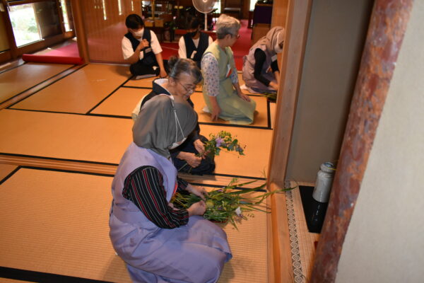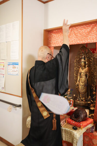 利用者様と職員の名前が読み上げられ、全員に散華が配られました。